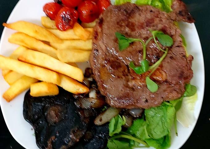 Tender steak chunks, green pepper, mushrooms, onions and tomato, arranged on a sword and served with rice pilaf. Cook, stirring occasionally, until the vegetables are. Add the garlic, onions, peppers, herbes de provence, salt and pepper. The strip steak may be sold with or without the bone. Very well marbled and flavorful, the rib section is about the tastiest of all the steaks, and is tender and succulent enough for a quick treatment on the grill.