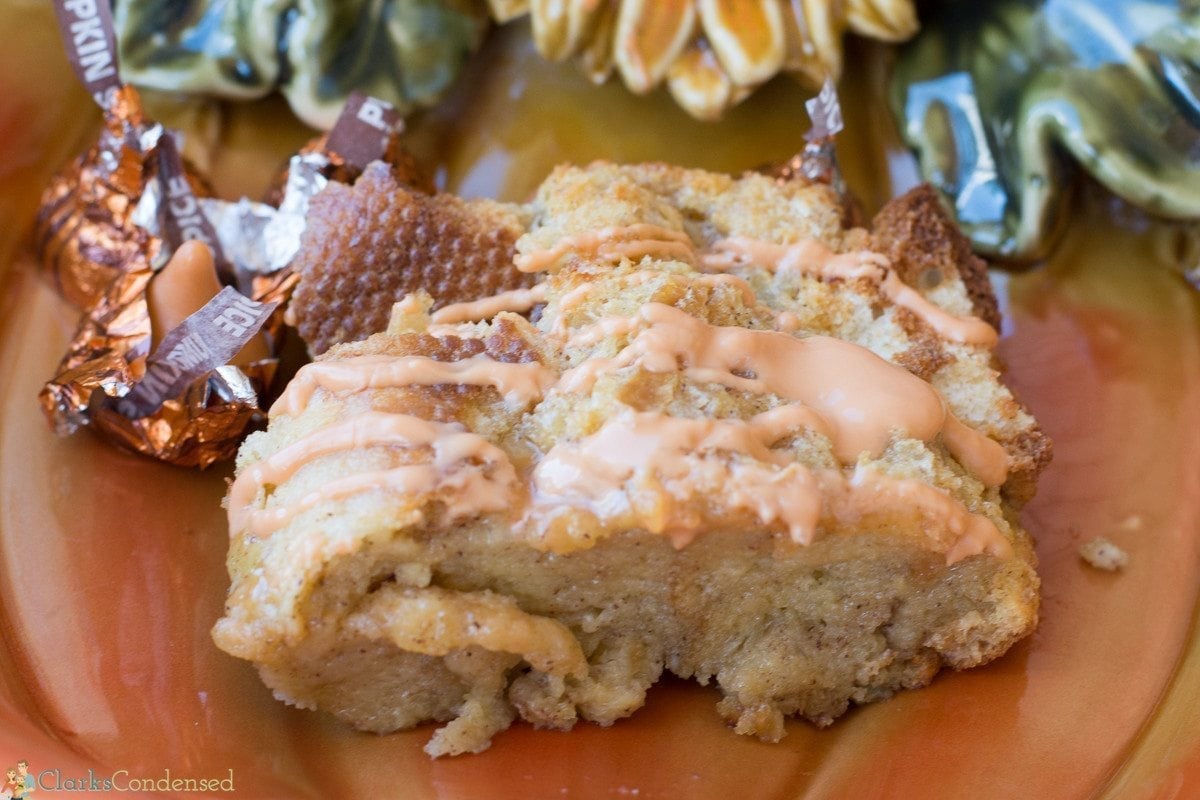 Lightly press down on the bread to soak up the liquids. Remove from heat and let cool slightly. Beat the eggs, brown sugar and pumpkin pie spice in a large bowl until blended. You can toast it for bread crumbs. For the whipped cream, hand whip to soft peak, fold in spice, sugar, and extract.